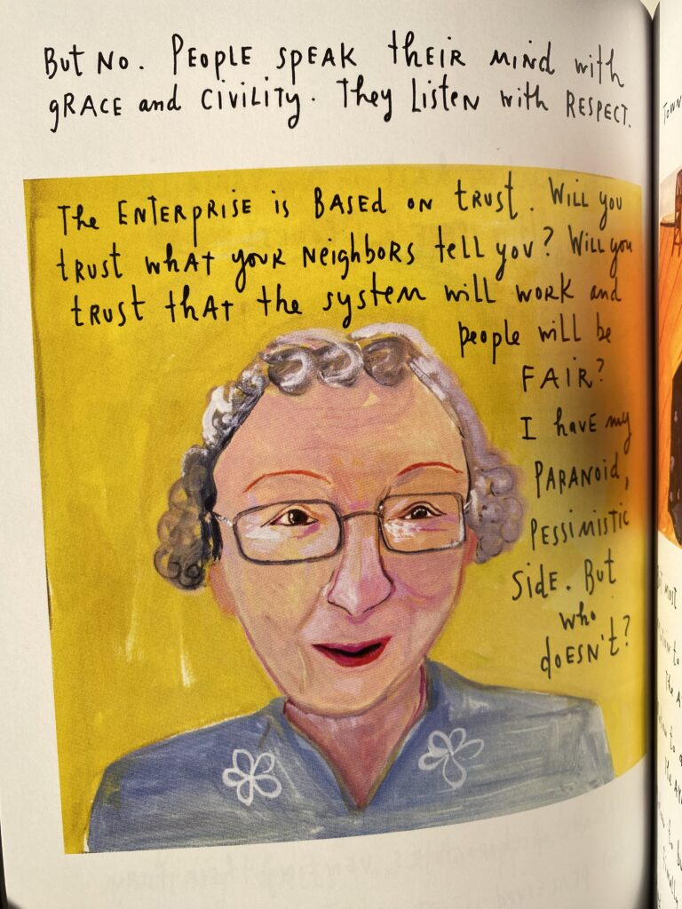 In Vermont, Kalman attends a small town political meeting, expecting “all kinds of characters venting their fury about perceived injustices,” but finds instead people who “speak their mind with grace and civility” and “listen with respect.”