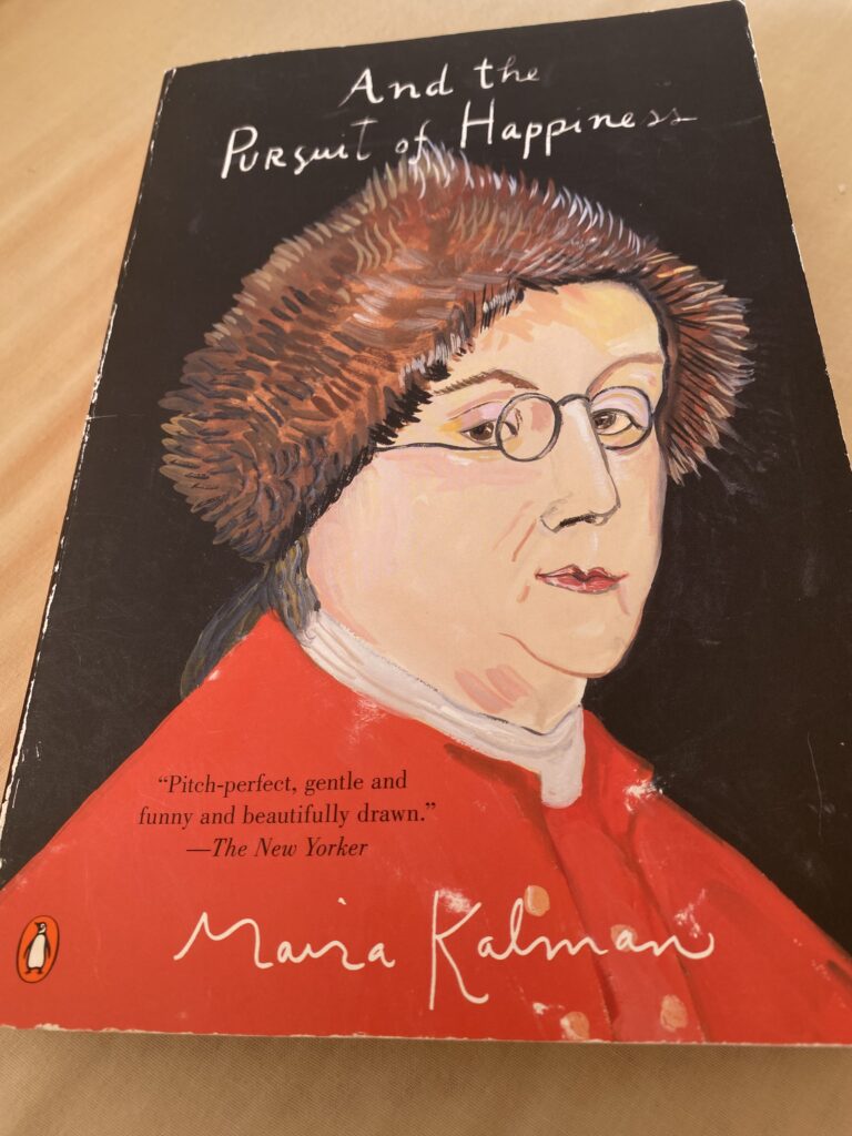 My friend Kim loaned me a book last week, which I just finished reading last night. It’s a fat and heavy book – 471 pages of the finest quality paper – filled with whimsical, bright, childlike art and handwritten text, all by the award-winning author and illustrator Maira Kalman, titled AND THE PURSUIT OF HAPPINESS.
